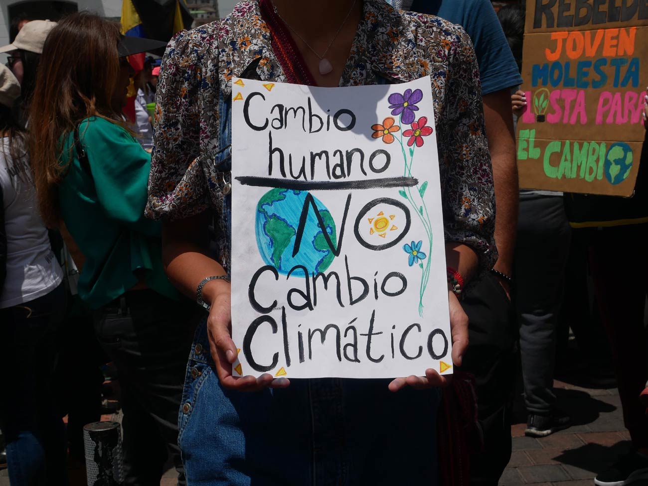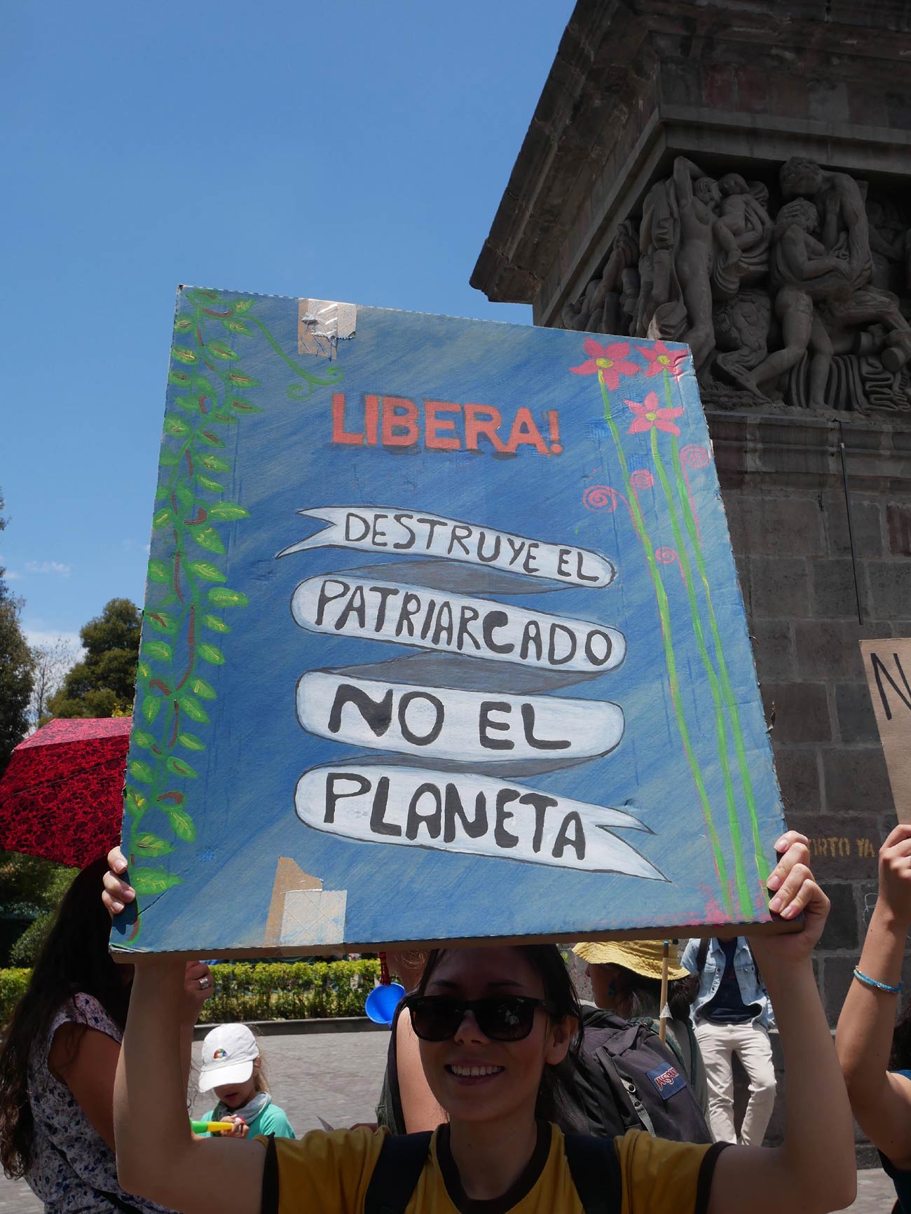D'ailleurs, il est intéressant de relever les chants et slogans utilisés pendant la marche : "Por el planeta, nadie se cansa" ; "Donde está America Latina ? En las calles, luchando por el clima !" ; "Ni agua, la tierra, esa es la vida" ; "Ni un grado más, ni una especie menos" ; "Se ve, se siente, la tierra está caliente" ; "Pacha...mama !" ; "Se quema la Amazonia y el estado no hace nada", "Destruye el patriarcado, no el planeta". Comme à Toulouse, les manifestants ne manquaient pas d'imagination et d'énergie mais, aussi, montraient une certaine convergence des luttes (cf: la marche pour le climat avec les gilets jaunes) des luttes et notamment avec le féminisme. « Indispensable », selon Sofia, cette convergence n'a cependant pas les mêmes fondations qu'en France.