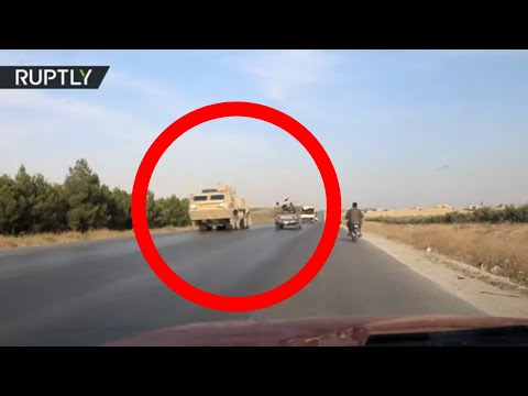 La caméra de l'agence de presse Ruptly a capté une scène improbable dans le nord de la Syrie : deux convois militaires l'un syrien, l'autre américain, se sont croisé sur une route reliant Minbej à Kobané, dans le nord de la Syrie.
