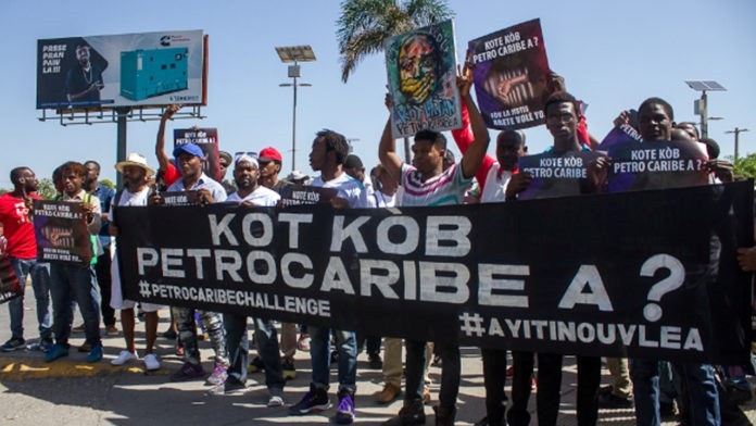 Enfin, en février 2019, le scandale de corruption a éclaté, popularisé sous le nom de #PetroCaribeChallenge. Le hashtag provient d'un tweet qui demandait en créole : Kote kòb Petrocaribe a ? (Où est l'argent de PetroCaribe ?). Depuis lors, les gens ont commencé à militer pour un audit collectif et une nouvelle vague de mobilisations contre le gouvernement haïtien, accusé de détourner des milliards de dollars de la subvention vénézuélienne. Corollaire de la grande mobilisation citoyenne, la Cour des comptes a remis fin mai au Sénat un rapport dans lequel elle conclut qu'au moins 14 anciens responsables ont détourné plus de 3,8 milliards de dollars du programme Petrocaribe entre 2008 et 2016. En ce qui concerne l'actuel président, le rapport précise qu'Agritrans s'est vu attribuer des contrats pour la construction de projets bananiers et d'autoroutes qui n'ont jamais été réalisés, malgré l'argent reçu à cette fin (12).