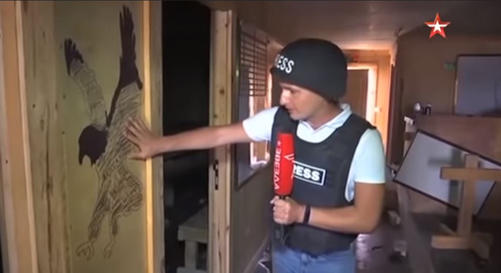« Les journalistes de Zvezda n'étaient pas les seuls à entrer dans la base. News-Front a publié une autre vidéo présentant plusieurs autres «messages aux Russes» mentionnés par le point de vente, notamment un tableau blanc avec le message «WE LOVE USA, heart, Russia @realDONALDTRUMP "et" #TheComrades" et un tableau blanc séparé proclamant que Nike était meilleure qu'Adidas (la marque allemande de vêtements préférée des russes, selon la culture pop états-unienne) et que le whisky était supérieur à la vodka ».