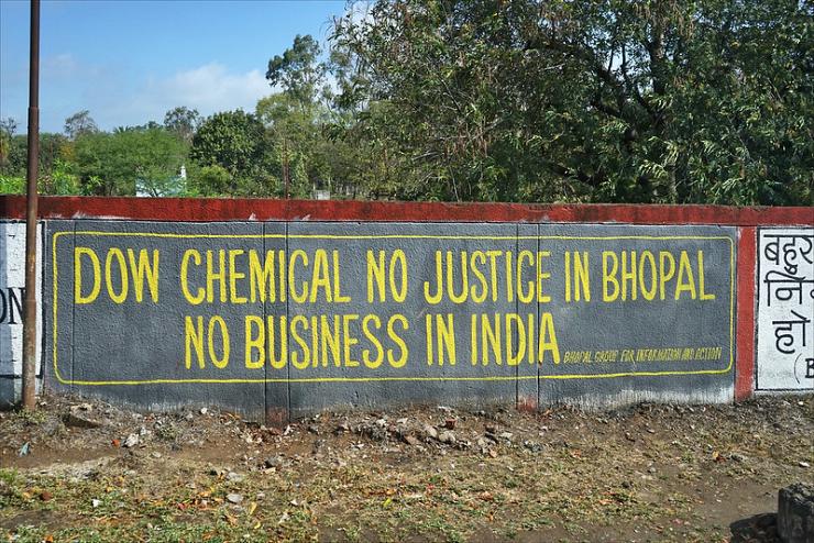 Photo : Le site de l'ex-usine Union Carbide (Dow Chemical) à Bhopal, en Inde. CC 2.0 Jean-Pierre Dalbéra.