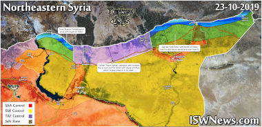 Lors d'une réunion à Washington, un haut responsable du département d'État a déclaré à un dirigeant kurde syrien que les États-Unis ne retireraient pas complètement leurs forces du nord-est de la Syrie et a conseillé à son administration de ne pas s'engager avec le gouvernement de Bachar al-Assad ni avec la Russie. Selon deux sources familières avec la réunion du lundi 22 octobre, un haut responsable de l'équipe diplomatique de Washington se serait fâché et aurait dit à Ilham Ahmed, président du Comité exécutif du Conseil Démocratique Syrien (CDS), que les Etats-Unis ne permettraient pas au CDS de conclure un accord avec le régime Assad ou la Russie pour se protéger contre cette attaque menée par la Turquie.... Des responsables du CDS ont déclaré au Defense Post que les responsables américains avaient promis par le passé qu'ils ne retireraient pas les forces américaines tant qu'un règlement politique n'aurait pas été mis en place pour assurer leur avenir dans le système politique syrien.