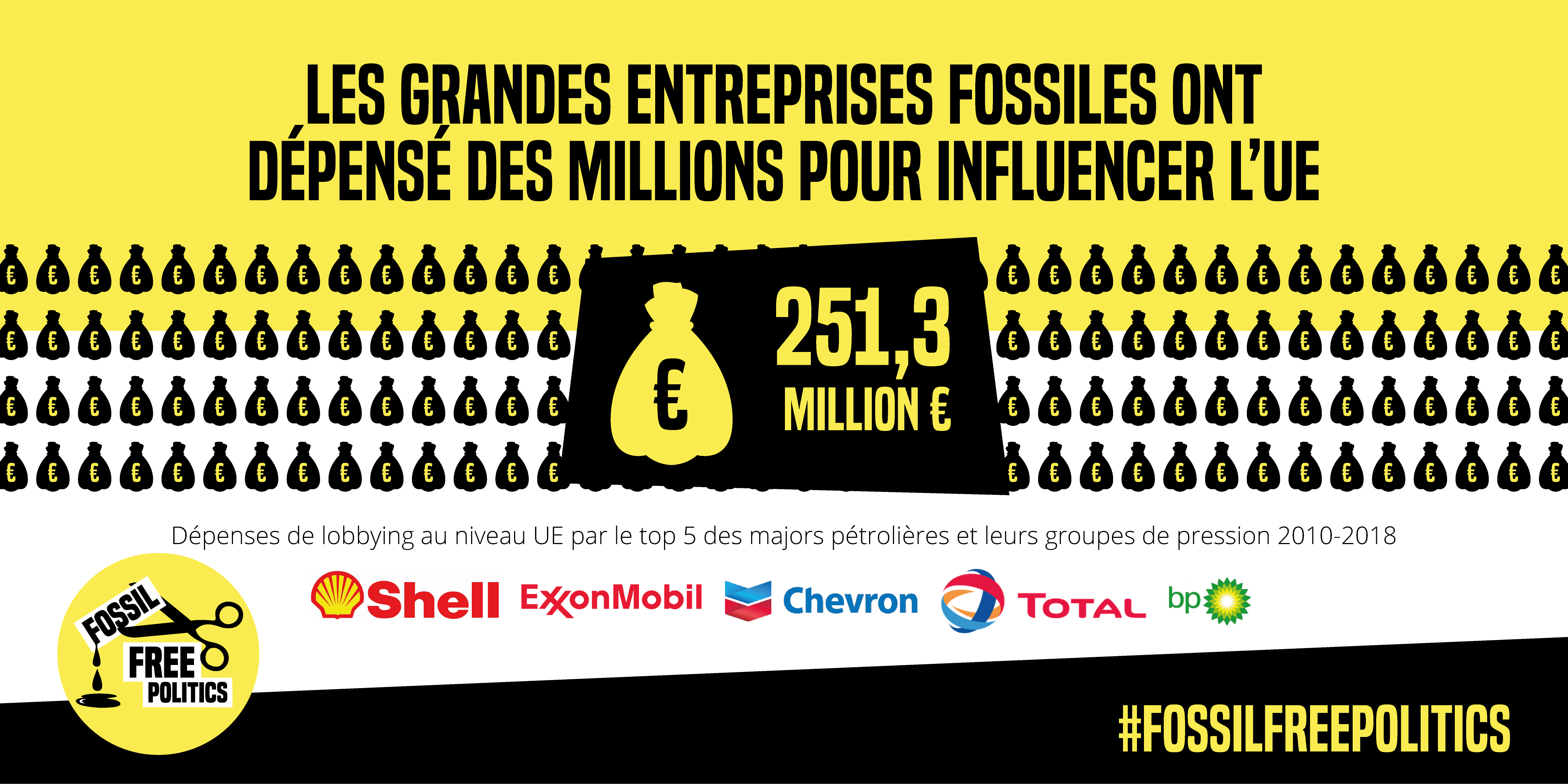 Les cinq plus grandes compagnies pétrolières et gazières mondiales (BP, ExxonMobil, Chevron, Shell et Total) et leurs lobbyistes ont dépensé au moins 251 millions d'euros en lobbying auprès de l'Union européenne depuis 2010. En France aussi, les données du registre de transparence montrent que les entreprises impliquées dans les énergies fossiles ont dépensé 8,6 millions d'euros de lobbying en 2018. Un collectif d'ONG, auquel s'associe l'Observatoire des multinationales, lance une campagne pour « bouter les énergies fossiles hors des cercles de décision politique ».
