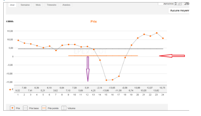 Voici un graphique qui représente le prix négatif du MWh défini par le «marché». Le producteur doit payer son produit pour que quelqu'un veuille bien le lui prendre. Alors comment peut-il gagner sa vie, ou en tout cas ne pas faire faillite. Actuellement le groupe suisse Alpiq est en train de se faire démanteler par.... Goldman Sachs, lui-même acteur important du marché du trading de l'énergie.