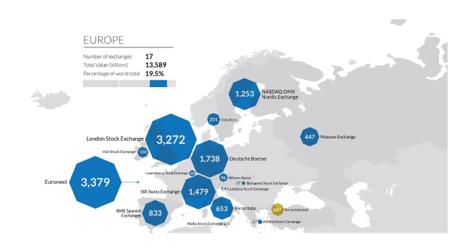Arrivent loin derrière dans le palmarès, les bourses européennes et asiatiques.