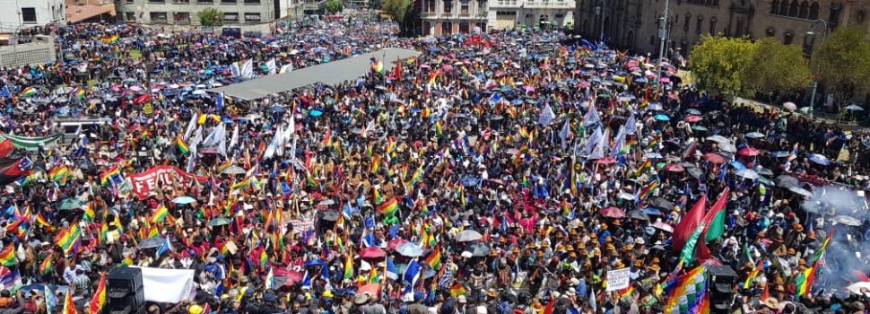 A La Paz, une immense manifestation a exigé le respect de la victoire du président Evo Morales au premier tour des élections générales de dimanche dernier et a annoncé que, si nécessaire, ils défendraient le processus au prix de leur vie. La foule qui remplissait la place de San Francisco et bloquait toutes les rues adjacentes condamnait la tentative de coup d'Etat fomenté par la droite bolivienne avec un soutien étranger.