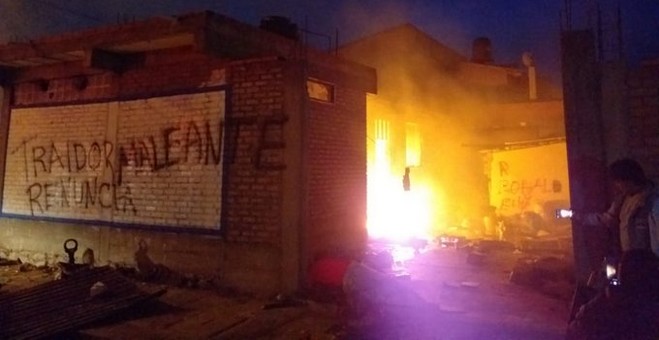 Les maisons du gouverneur d'Oruro, Víctor Hugo Vásquez, militant du MAS, et d'Esther Morales, sœur du président, ont été incendiées par des groupes violents. Cette action n'a pas non plus été spontanée. La présidente du Comité civique des femmes de Cochabamba, Claudia Flores, a appelé à un siège des maisons des dirigeants du parti au pouvoir, révélant qu'il s'agit d'une ligne d'actions programmées.