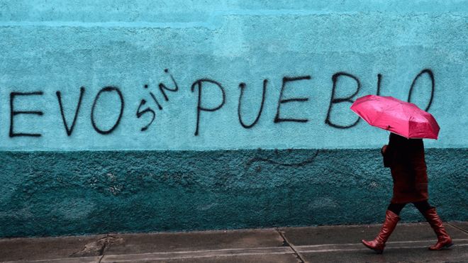 Le sentiment d'abandon et d'être orphelin·es qui accompagne le départ d'Evo Morales pour le Mexique se ressent dans les rues. Les gens m'appellent à la radio et éclatent en larmes sans pouvoir parler, sous l'effet de la douleur, leur sentiment de faiblesse et d'abandon efface de leur mémoire la violence et l'arbitraire du caudillo (chef), et les gens soupirent après lui comme un père protecteur et bienfaiteur.