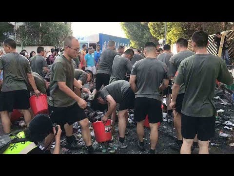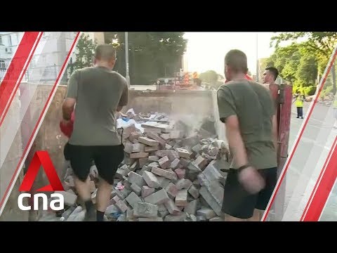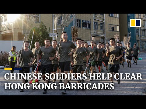 Hong Kong - l'Armée chinoise intervient pour la première fois... Sans armes et sans treillis, pour nettoyer des débris de barricades et débloquer des routes