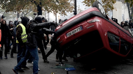 A Paris le 16 novembre, durant deux heures en début d'après-midi, la situation est restée confuse place d'Italie, où les forces de l'ordre ont tenté de disperser de petits groupes de casseurs, alternant charges brèves et jets de gaz lacrymogènes. «Au vu des violences et des exactions», la préfecture de police a demandé l'annulation de la manifestation qui devait s'élancer de cette place à partir de 14h. Des voitures ont été renversées ou incendiées, un engin de chantier et des poubelles ont été brûlés, des abribus saccagés. Enfin, des pompiers ont été empêchés d'intervenir et, au centre de la place, un monument en mémoire du maréchal Juin a été dégradé.