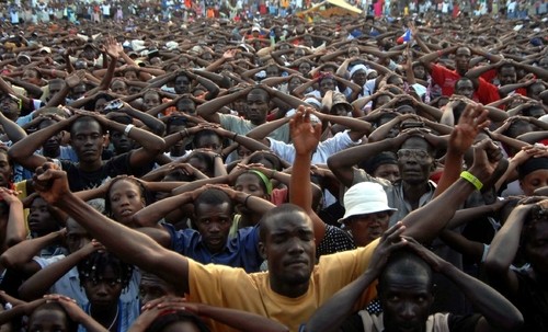 Prière de masse sur la Place nationale de Port-au-Prince, en janvier 2010, après le tremblement de terre qui a fait plus de 200 000 victimes