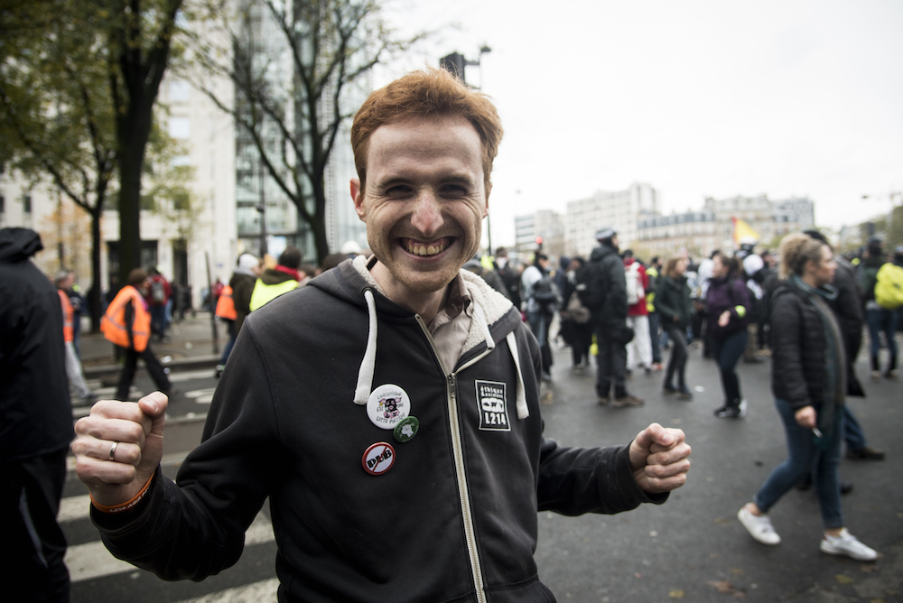 Un peu plus loin, un groupe de Black Bloc s'attaque à la façade de la banque HSBC, qui ne résistera pas longtemps à leurs assauts. « Ils n'ont pas respecté le consensus de non violence », rigole Benoit, un militant antispéciste habillé avec un pull L214. « Moi, je viens ici casser le système capitaliste, comme tout le monde. D'ailleurs, j'ai toujours considéré les Gilets jaunes comme un mouvement écolo. À partir du moment où tu combats les multinationales qui sont responsables de 75 % de la pollution dans le monde, tu es écolo. »