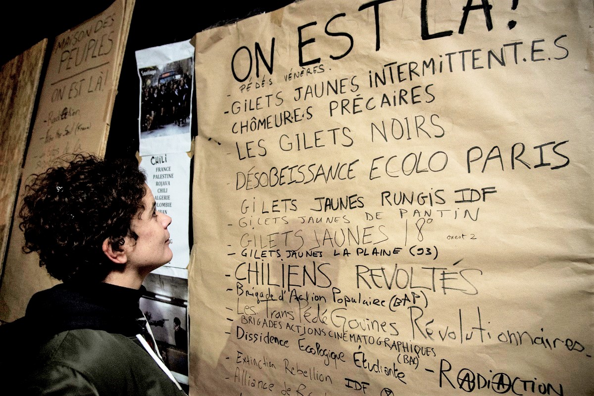 « Avec mon amie, on a passé la journée à errer dans Paris pour fuir les nasses policières. J'ai entendu parler de ce lieu sur l'application Télégram. Il avait l'air accessible et fait pour parler avec des gens sans les lacrymos. Mais cela m'embête un peu de lâcher les autres, notamment mon père, encore dehors dans les nasses », expliquait Margaux, 25 ans, chapeau d'anniversaire sur la tête. La jeune fille vit à Nantes, où il existe déjà une Maison du peuple, un lieu politique rassemblant des gens de tous horizons. « À Paris, la convergence entre les Gilets jaunes et Extinction Rebellion par exemple n'est pas facile, car on se dit que ce sont des bobos écolos peu conscients de leurs privilèges. C'est un peu caricatural, je sais bien. Et je pense justement que ce type de lieu permet de faire tomber les préjugés. »
