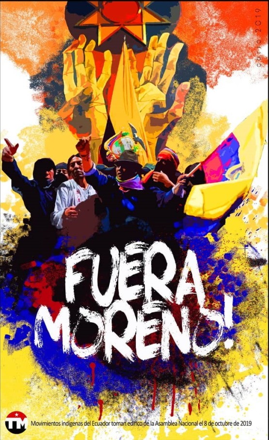Appliquant les recettes du Fonds Monétaire International, le président Lenín Moreno négocie un prêt millionnaire dont une des conditions est l'annulation des subventions aux prix du carburant (environ 1,173 milliard d'euros par an). La révolte est immédiate : le 3 octobre, ce sont les camionneurs qui commencent, puis les étudiants, les enseignants, les travailleurs. Leurs organisations, la CONAIE (Confédération des Nationalités Indigènes), le Front Unitaire des Travailleurs, les syndicats de l'enseignement mobilisent des milliers et des milliers de personnes qui affluent dans les rues et entourent Carondelet, le palais siège du gouvernement, et le bâtiment de l'Assemblée Nationale. Et ils occupent même le siège du FMI à Quito, où ils savent que réside le « gouvernement réel » qui manœuvre la marionnette Moreno. Pour la première fois, même les communautés indigènes de l'Amazonie, menacées dans leur survie même par les multinationales pétrolières, se joignent à eux.