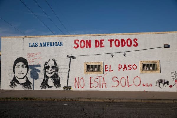 "Les Amériques sont à tous": fresque murale sur le Centre d'aide aux migrants à El Paso, Texas