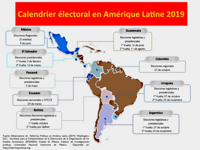 Si la mobilisation de rue a été le trait distinctif des 3 pays cités plus haut, le refus du modèle libéral a aussi été exprimé ce mois-ci dans les urnes dans d'autres pays comme la Bolivie, l'Argentine et la Colombie.