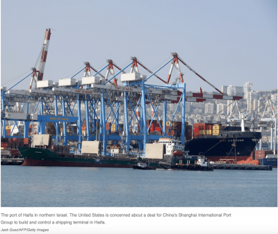 Seules la Chine et la Russie, les pays que Feltman craint le plus, peuvent apporter un espoir financier au Liban. La Chine a investi dans le port de Haïfa par un contrat de 25 ans visant à élargir sa capacité de transport et à moderniser les centrales électriques et les transports publics en Israël, dépensant 12,19 milliards de dollars entre 2005 et 2019.