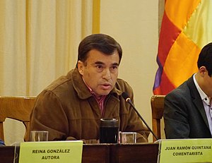 Juan Ramon Quintana est né le 3 Décembre de 1960 dans la ville de Aiquile dans le département de Cochabamba. Il a commencé ses études en 1966 et a quitté le lycée en 1977 dans sa ville natale. Poursuivant ses études professionnelles, il entre en 1979 au Collège militaire de l'armée (COLMIL) à La Paz. Il est resté quatre ans en tant que cadet à COLMIL et a obtenu en 1982 le grade de lieutenant de l'armée.(né à Aiquile, Cochabamba, Bolivie, 3 décembre 1960, c'est-à-dire la zone de résistance) c'est un militaire, sociologue et homme politique bolivien. Il a été ministre de la présidence bolivienne lors des premier, deuxième et troisième gouvernements du président Evo Morales. Après le vice-président Álvaro García Linera, il est considéré comme l'un des hommes les plus puissants du Mouvement pour le socialisme (MAS).