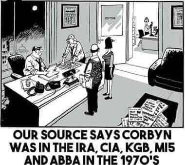 Notre source nous informe que Corbyn faisait partie de l'IRA, de la CIA, du KGB, du MI5 et du (groupe pop suédois) ABBA dans les années 1970.