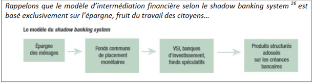 Ces quelques lignes de M. Villeroy de Galhau nous renvoient aux commentaires relatifs au modèle d'intermédiation financière du shadow banking system. On y détecte les arguments en faveur d'investissements plus risqués et sur une durée plus longue, allant ainsi à l'encontre de l'intérêt des détenteurs de cette épargne. Le marché a besoin de l'épargne abondante de la zone euro pour faciliter l'emploi des produits dérivés et l'émission de créances à risques. De fait, l'épargne des ménages se montait à plus de 20'000 milliards d'euros en 2014, soit 12,7 % du PIB. Une manne bienvenue !