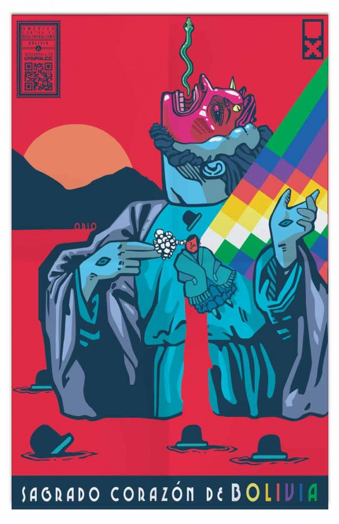 Sacré-Coeur de Bolivie, affiche de la Comunidad Utopix, collectif d'artistes du Venezuela