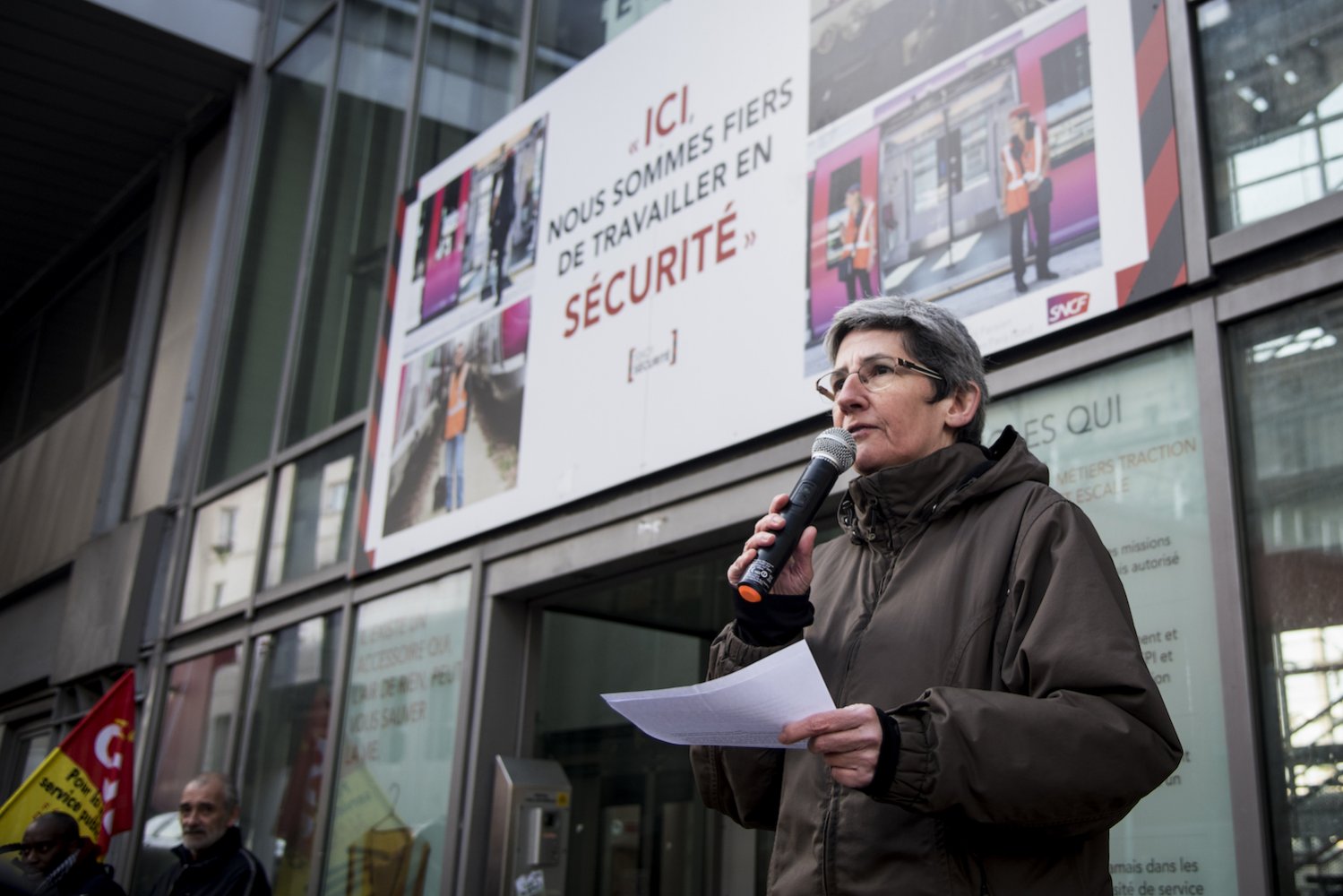 Ils étaient une centaine de cheminots à se retrouver en assemblée générale, quelques heures avant la manifestation interprofessionnelle. « Comment faire confiance [au haut-commissaire aux retraites Jean-Paul] Delevoye, qui nous prépare cette réforme, lui qui a si peu de mémoire, à tel point qu'il avait oublié de déclarer ses liens avec le monde de l'assurance ? », s'est interrogée Monique Dabat en lançant l'assemblée. « On est toujours sur la même dynamique et on ne veut rien d'autre que le retrait de la réforme, sans négociations », a déclaré sous les applaudissements Anthony, agent d'accueil itinérant sur la ligne H du transilien.
