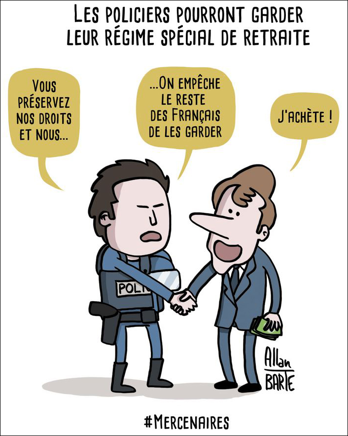 Après le projet d'accord en douce, pour conserver un régime de retraite spécial pour les policiers, alors que le gouvernement prétend - en même temps - vouloir mettre un régime universel pour tous les Français sans exception...