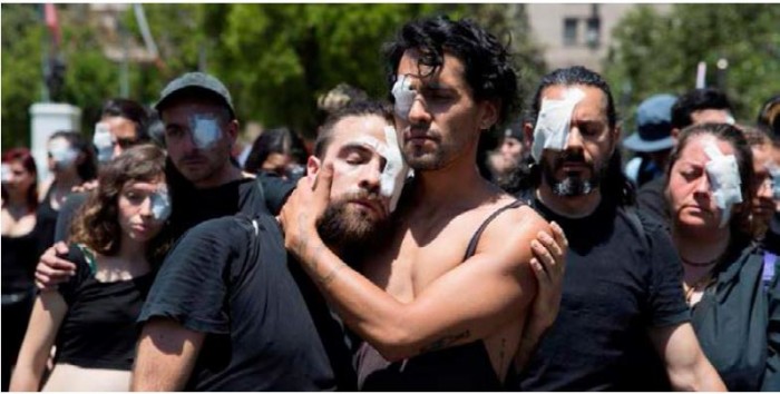 Depuis le 18 octobre 2019, les policiers chiliens visent et tirent sur les yeux des manifestants au Chili. Le docteur Dennis Cortés, président de la Société Chilienne d'Ophtalmologie, a dénoncé, le 4 novembre, devant la Commission des Droits Humains du Sénat du Chili, le fait que c'est le chiffre le plus élevé au monde de blessures oculaires par armes non létales dans des manifestations ou des zones de conflit, au-dessus du chiffre enregistré en France pendant la crise des Gilets jaunes, lors des protestations de Hong Kong, ou dans le conflit israélo-palestinien. Ennio Vivaldi, recteur de l'Université du Chili, institution à laquelle appartiennent nombre de blessés, a observé que « le nombre de blessés oculaires est tel qu'on en vient à penser qu'il est intentionnel. Ceux qui reçoivent les projectiles ne sont pas ceux qui provoquent les incendies, ou qui se livrent aux saccages, mais ceux qui manifestent pacifiquement ».