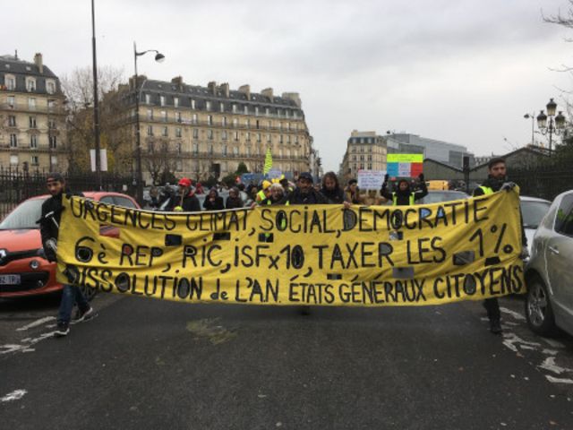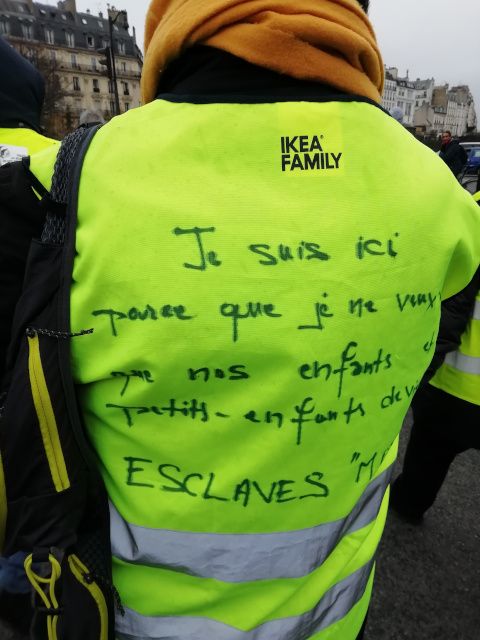 Franck, un conducteur RATP «gilet jaune», a expliqué: «Nous en est en guerre et en grève contre cette réforme des retraites qui concerne tous les Français. On n'est pas là pour défendre notre bifteck, sinon on ne serait pas venus ici soutenir les 'gilets jaunes'..... Cela prouve bien qu'on est pas là pour défendre notre assiette, mais celle de tout le monde, de nos enfants, de tous les Français. Cette réforme est faite uniquement pour arroser les fonds de pension privés, leurs petits copains comme d'habitude, et pour détruire un système qui est là de longue date dans notre pays.»