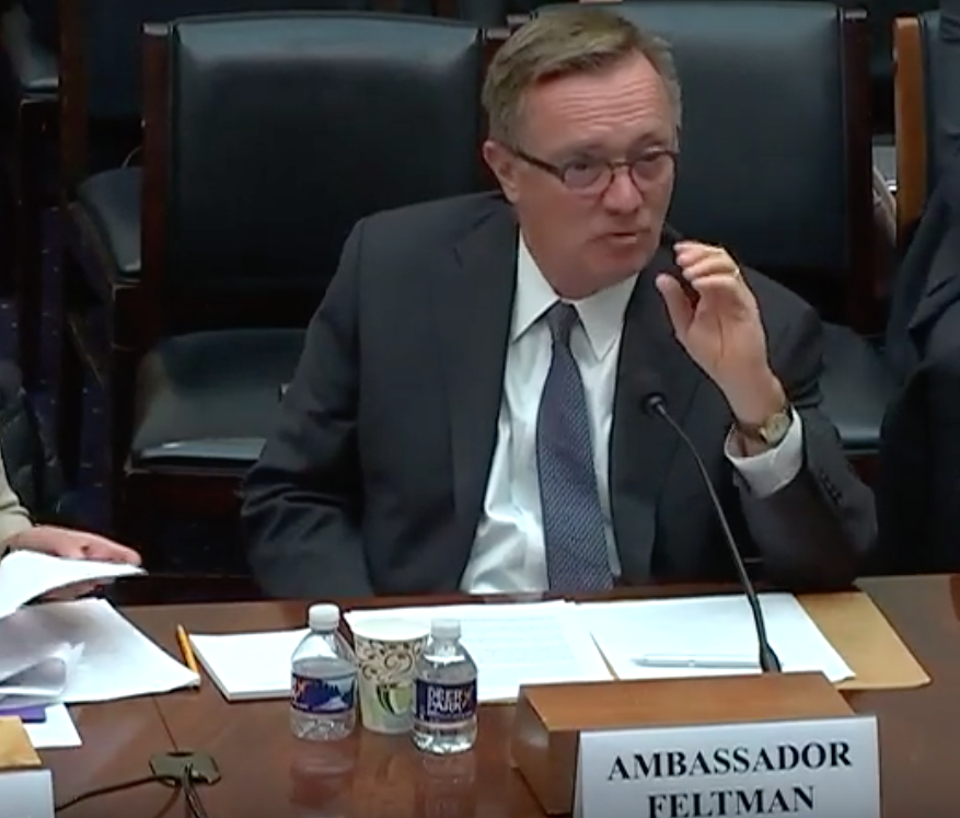 Photo: L'ancien ambassadeur américain Jeffrey Feltman témoignant devant le Congrès, le 19 novembre 2019 (Capture d'écran YouTube)