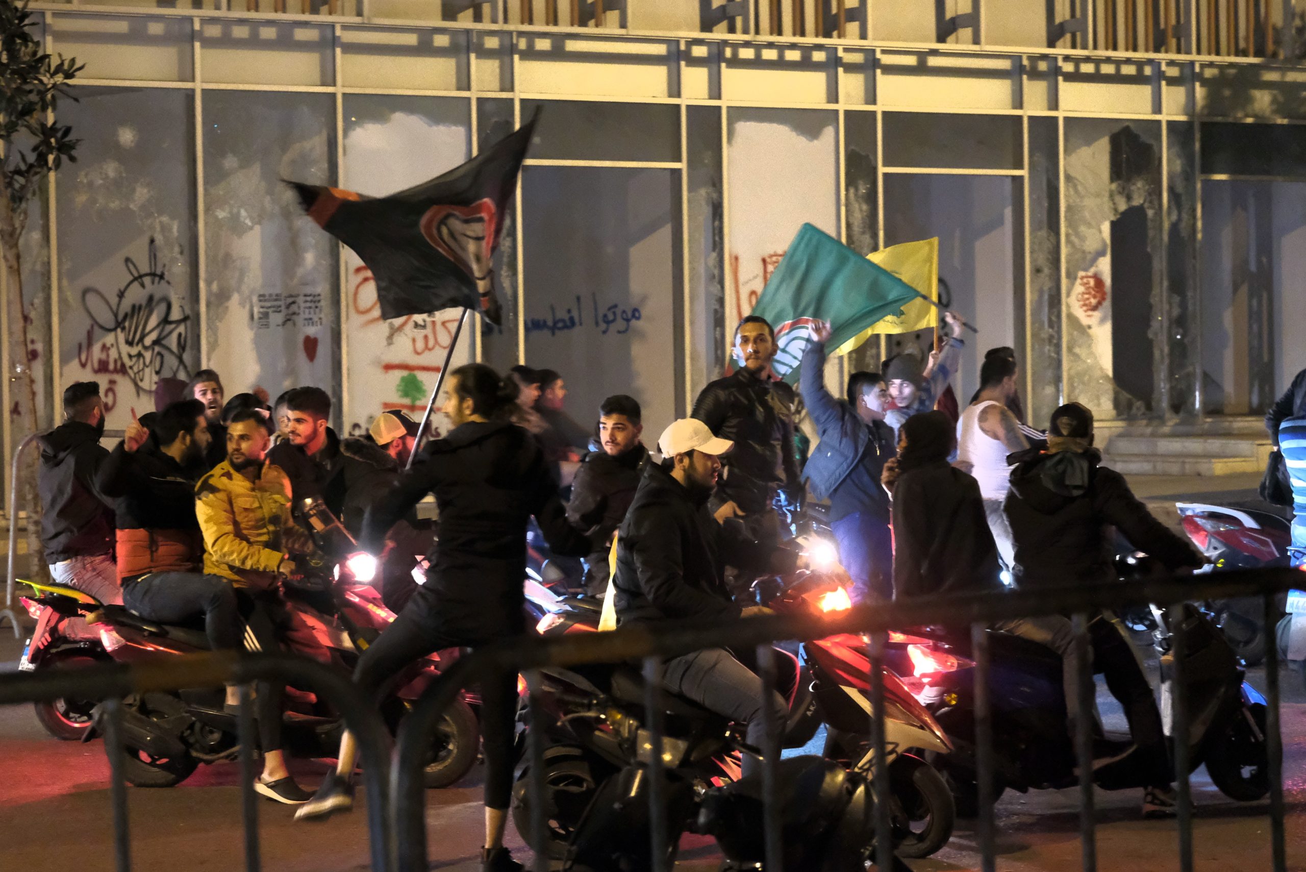Les partisans du Hezbollah et du Mouvement Amal sur des motos à la place des Martyrs à Beyrouth, le 25 novembre 2019. (Nadim Kobeissi, CC BY-SA 4.0, Wikimedia Commons)