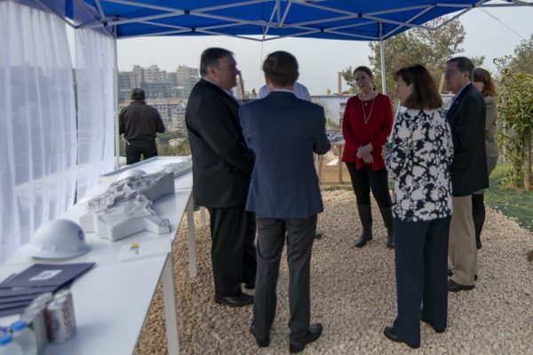 Le secrétaire d'État américain Mike Pompeo visite le site prévu pour la construction de la nouvelle ambassade des États-Unis au Liban, le 23 mars 2019. (Département d'État/Ron Przysucha)