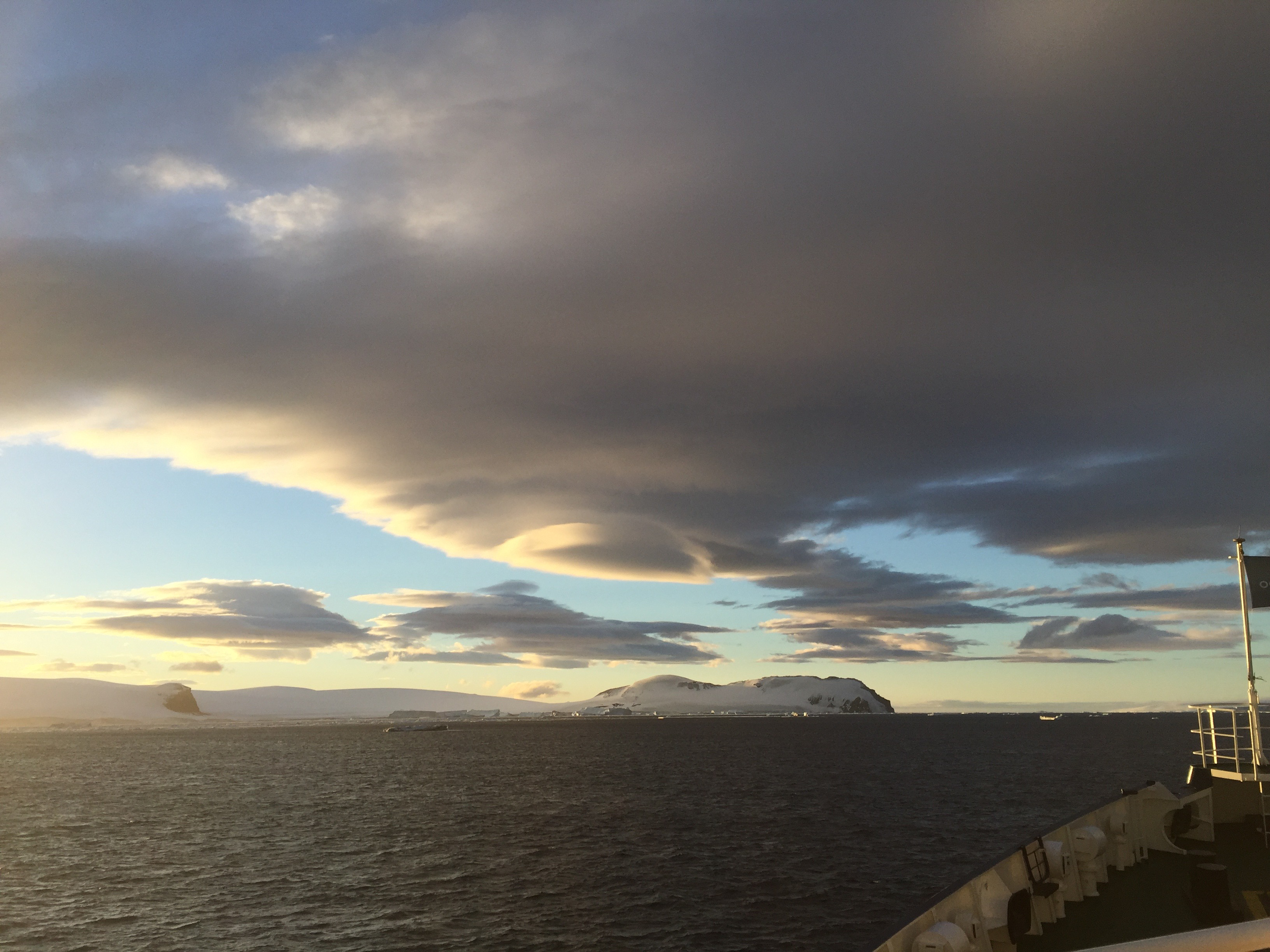 Ils prétendent qu'il s'agit de la photographie d'un vaisseau-nuage ou d'un grand vaisseau extraterrestre qui utilise un camouflage de type nuageux. Cependant, ce qui nous intéresse davantage, c'est l'image vague de ce qui ressemble à de grands bâtiments sur la côte lointaine. Quoi qu'il se passe là-bas, c'est clairement plus que quelques scientifiques étudiant les pingouins.