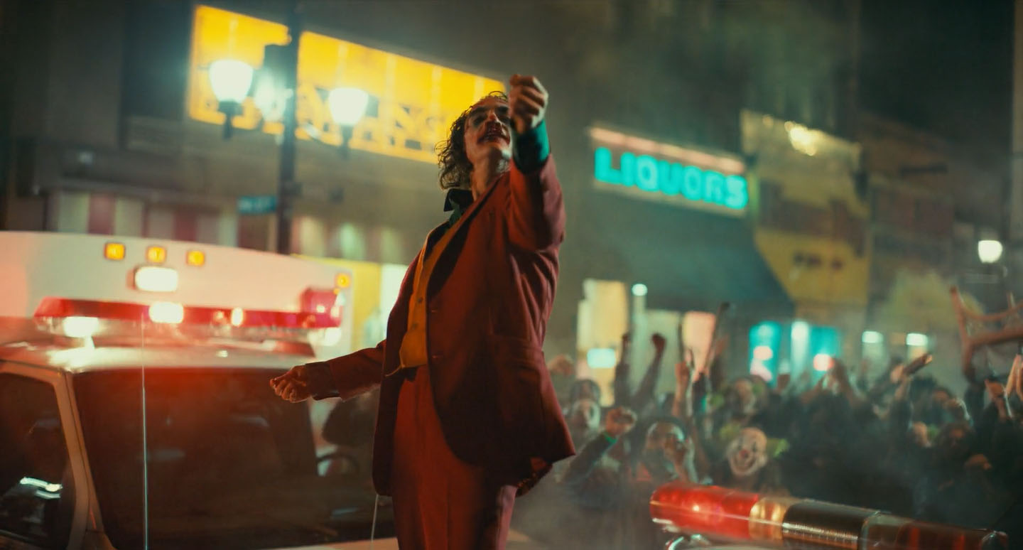 Mais le sourire qui reste à la fin du film, lui est d'une nature assez extraordinaire. C'est à cause de ce sourire que tant de gens comme moi se sont empressés d'écrire un article au lendemain matin. À la fois, il faut le dire, il est sadique, puisque la foule révolutionnaire érige en icône le Joker au visage tâché de sang, qui danse pour fêter la victoire de l'avènement de l'ère du crime, où véritablement, dans la conscience populaire, s'inaugure le jour où officiellement le sang versé est devenu la solution à tous les problèmes. Bienvenue en enfer.