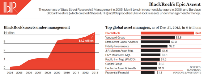 Mais ce n'est pas tout. Ce bond qui a mis en avant Blackrock au lendemain de la crise des subprimes est dû à un phénomène voulu qui se révèle essentiel. L'article relève que: « Derrière l'explosion de ces quelques mastodontes de la finance se trouve une nouvelle tendance : la gestion dite « passive ». Ce barbarisme résume une idée très simple : puisque les traditionnels gérants « actifs » n'ont pas vu venir la crise de 2008, mieux vaut investir son argent « passivement », en se contentant de suivre un indice. Désormais, beaucoup de fonds suivent simplement le CAC 40, le FTSE 100 ou le S&P 500. Beaucoup le font à travers un nouvel instrument, appelé Exchange-Traded Fund (ETF), qui est un produit financier lui-même coté en Bourse qui réplique un indice boursier. »