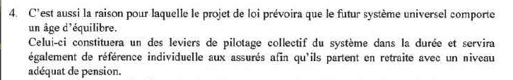 car d'une part le pouvoir n'a retiré qu'en apparence toute référence à l'âge pivot puisque manipulation sémantique c'est l'âge d'équilibre qui serait explicitement rétabli dans la future loi, comme le stipule le point 4 de la lettre adressée hier par PHILIPPE aux organisations :