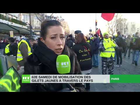 «On est là, on est là, même si Macron ne veut pas, nous on est là» : les Gilets jaunes restent dans la rue pour le 62e samedi consécutif. Rejoints dans l'expression de leur mécontentement social par le mouvement de contestation et de grève nationales contre la réforme des retraites, les marcheurs à la chasuble fluorescente ont trouvé un nouveau souffle, bien que leur nombre ait diminué.