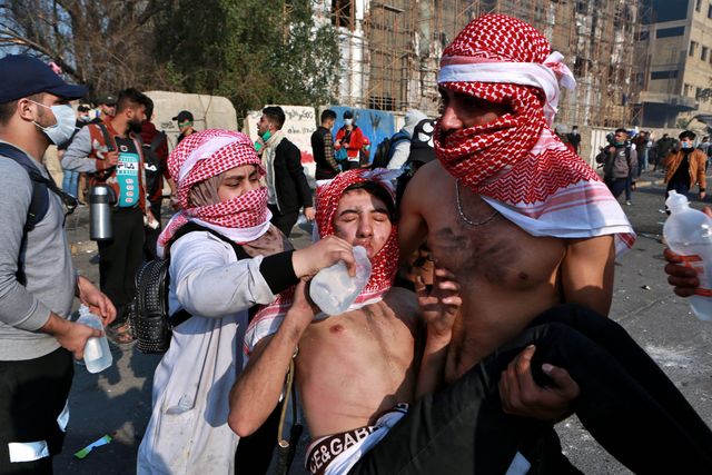 Au moins cinq manifestants auraient été tués au cours des manifestations qui ont déferlé sur Bagdad et d'autres villes lundi, les forces de sécurité tirant dans la foule à balles réelles. À Bagdad, trois personnes sont décédées des suites de blessures subies lors des manifestations, deux par des coups de feu et un troisième fauché par une bombe lacrymogène tiré directement à la tête. Un quatrième manifestant a été abattu par la police dans la ville de Karbala, au sud-ouest de Bagdad ; un cinquième a été tué dans la ville de Baqubah, dans le nord-est de l'Irak.
