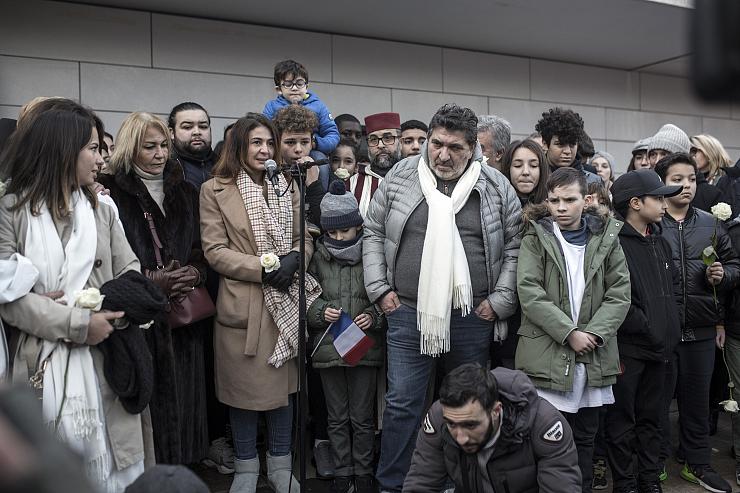 Photo : rassemblement en mémoire de Cédric Chouviat, avec son épouse, le 8 janvier à Paris / © Anne Paq