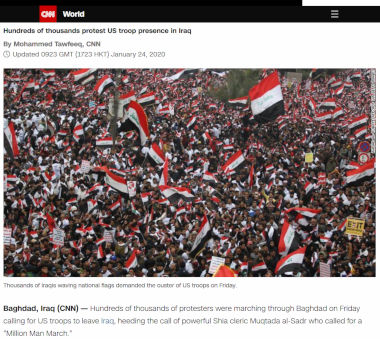 Trente huit minutes plus tôt, CNN avait déjà annoncé que « des centaines de milliers » manifestaient à Bagdad contre la présence de troupes américaines en Irak.