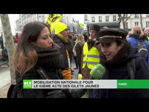 Des Gilets jaunes ont défilé dans les rues françaises pour leur 63e acte. Une nouvelle manifestation dans le sillage du mouvement social du 24 janvier contre le projet de réforme des retraites du gouvernement.