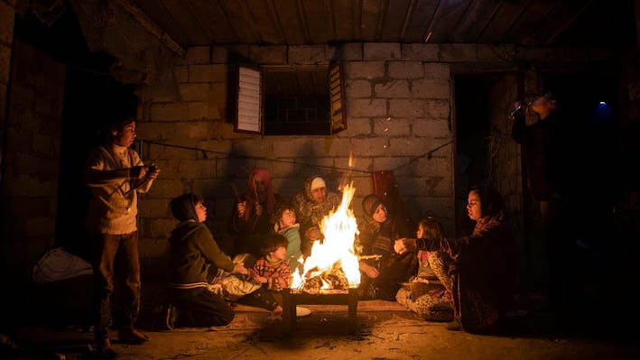 Famille à Khan Younes au coeur de l'hiver
