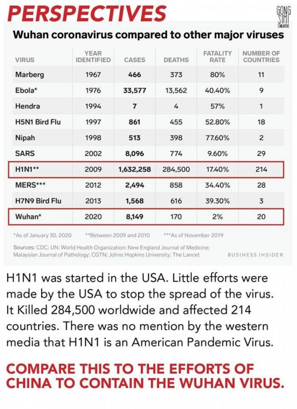 En 2009, le virus H1N1 (grippe porcine) apparu aux USA a infecté 1 600 000 personnes et en a tué 284 000 dans le monde entier. Washington a brillé par sa nullité dans le traitement de cette pandémie, et les médias occidentaux se sont bien gardés d'insister sur l'origine du virus. A ce jour, le nouveau coronavirus a infecté plus de 10 000 personnes et en a tué 200, exclusivement en Chine [304 au 2 février, dont un Chinois aux Philippines. N. du GS].