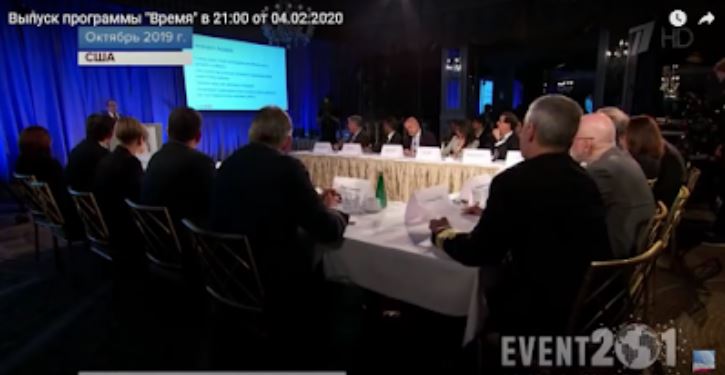 En revanche, l'émission russe donne une information qui surprend. Un jeu de rôles. Mais pas un simple jeu de rôles. Un jeu de rôles avec des représentants de l'establishment global sur le thème de la lutte contre une épidémie mondiale du virus corona a été organisé en octobre 2019 à New York, deux mois avant le véritable départ du coronavirus. Parmi les participants, l'on compte des représentants de l'ONU, des transnationales, de l'industrie pharmaceutique, de la Banque mondiale, de l'Administration américaine et d'autres personnalités importantes du monde global.