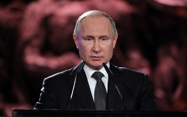 Le président russe Vladimir Poutine au 5e Forum de la Shoah, à Jérusalem, le 23 janvier 2020. (Crédit by Abir SULTAN / POOL / AFP)