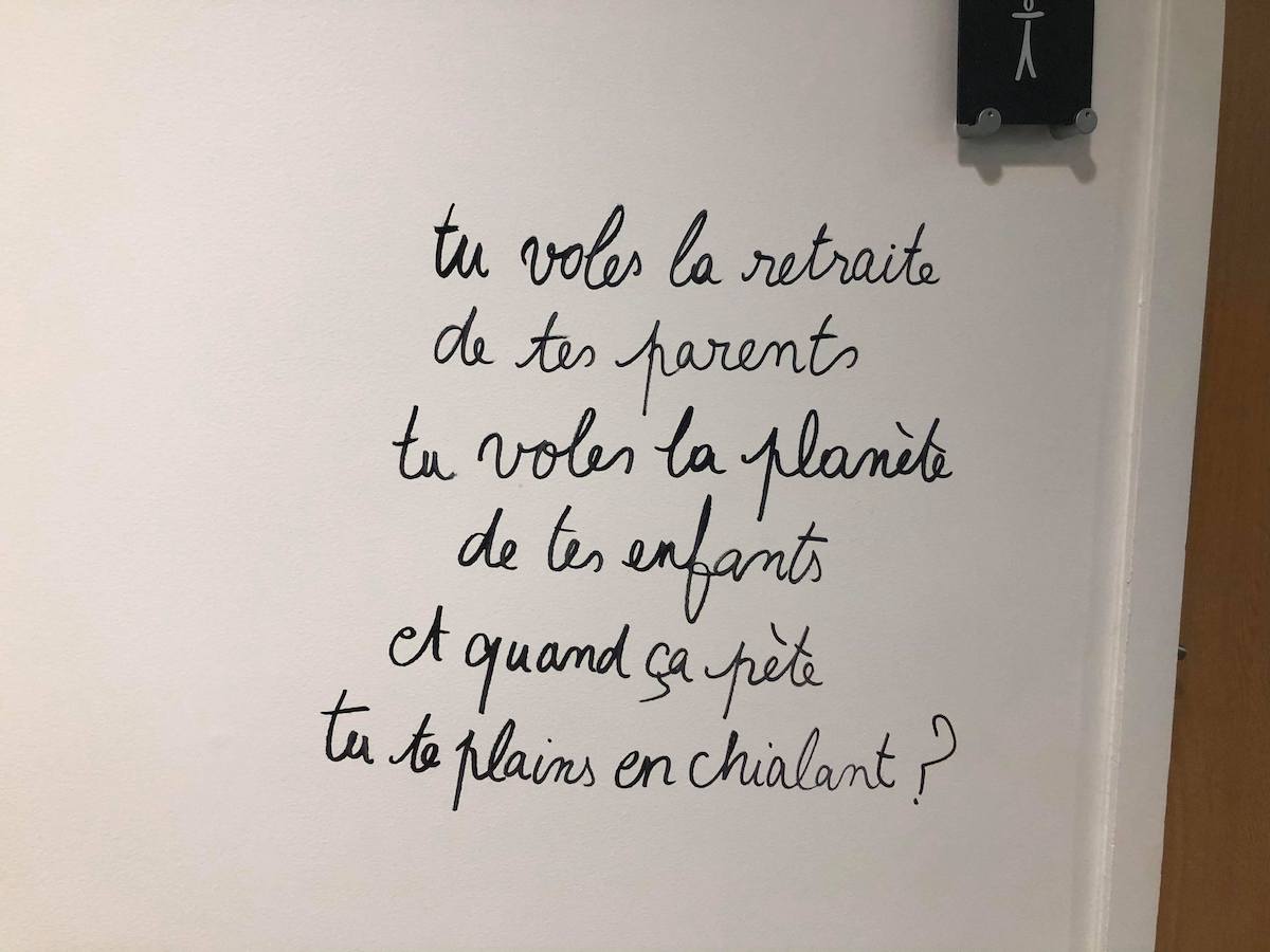 Fascinant tribunal d'adultes, qui juge cet adolescent coupable d'avoir graffité les murs d'un bureau ». « Dégradation des biens », répètent-ils. S'ils savaient quelles "dégradations" nous attendent tous... »