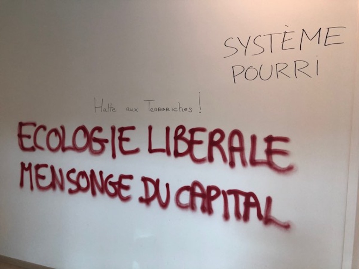 Dans l' « édito éco » de mardi, sur France Inter, le chroniqueur Dominique Seux a estimé que « l'opération de ces anarchistes qui haïssent le capitalisme mais adorent Facebook est bien sûr condamnable, mais elle illustre surtout le glissement vers une violence dangereuse ». Il a aussi défendu la prise de position de BlackRock contre un investissement minier de Siemens en Australie et conseillé aux militants de manifester « devant les ambassades des États-Unis et de Chine », « et en Chine même - parce que c'est là que le passif climatique est le plus lourd ».