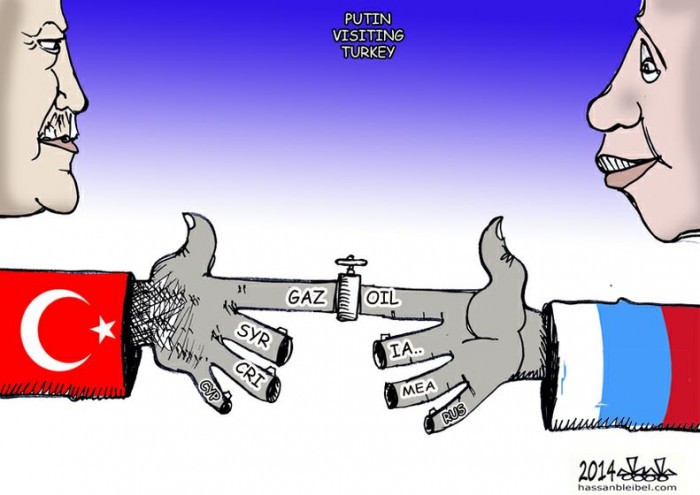 Moins claires sont les relations qu'Ankara entretient avec la Russie. Dans ce cas, l'union commerciale de plus en plus évidente et avancée (par exemple, le développement du projet TurkStream né en remplacement du SouthStream ouvertement boycotté par les USA) est équilibrée par l'opposition des deux pays sur divers théâtres de conflits : de la Syrie à l'Ukraine, jusqu'à la Libye (même si le cas libyen mériterait d'être précisé). Et il n'est pas à exclure que, outre les prétentions subimpérialistes d'Erdogan, des acteurs tiers « jouent » à exacerber les esprits sur ces divers « théâtres » pour faire en sorte que même l'union mentionnée plus haut se brise rapidement. Quant aux accords conclus à Sotchi entre Erdogan et Poutine, qui prévoyaient le désarmement des groupes terroristes actifs dans la région d'Idlib, non seulement la Turquie n'a pas respecté les obligations prévues, mais elle a continué à ravitailler les milices djihadistes (qui, en ce moment même, prennent pour cible, de façon répétée, les militaires russes en Syrie), et continue à considérer cette zone comme partie intégrante du territoire turc. A Idlib, on voit flotter les drapeaux turcs et les rues sont « décorées » de portraits d'Erdogan. En fait, Erdogan demande aux Syriens de se retirer de Syrie.