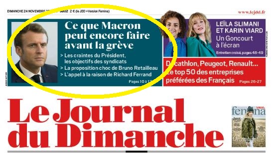 Le 23 novembre, le JDD s'interroge, en Une, sur « ce que Macron peut encore faire avant la grève ».
