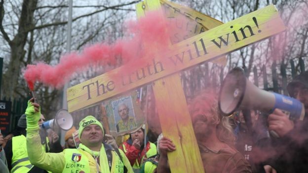 Trois jours intenses de combats, de violence et d'émotions. Le premier jour, lecture de l'acte d'accusation, plaidoirie d'Edward Fitzgerald sur l'histoire des faits, dans la galerie du public, seules 18 personnes ont pu prendre place. La clameur des Gilets Jaunes nous parvient du dehors, étouffée mais bien présente. Des dizaines de journalistes occupent un espace de la salle et l'annexe de la cour. Julian Assange comparait enfin physiquement et nous pouvons le voir pendant plusieurs heures, même s'il n'a pas le droit de parler, et qu'il a l'air affaibli et triste.